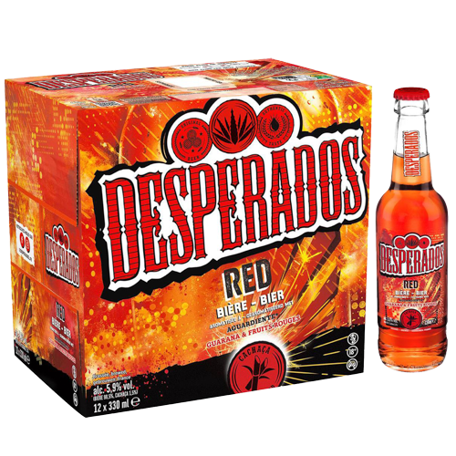 Desperados RED, une bière rouge éclatante, fusionne tequila et fruits rouges pour une explosion de saveurs sucrées et épicées.