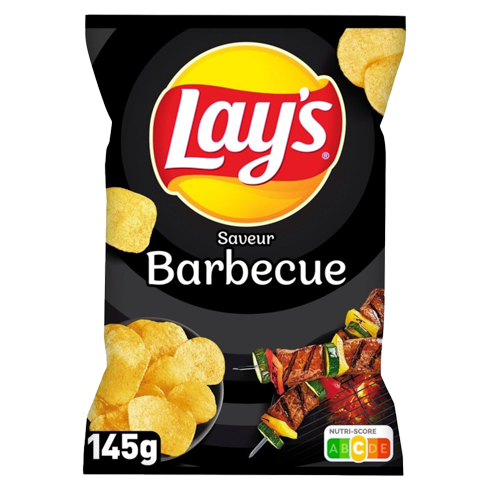 Chips Lays Barbecue, une explosion de saveurs fumées et épicées dans une texture croustillante et dorée.