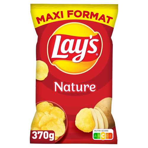 Chips Lays Nature, croustillantes et dorées, offrent une texture légère et un goût salé équilibré.