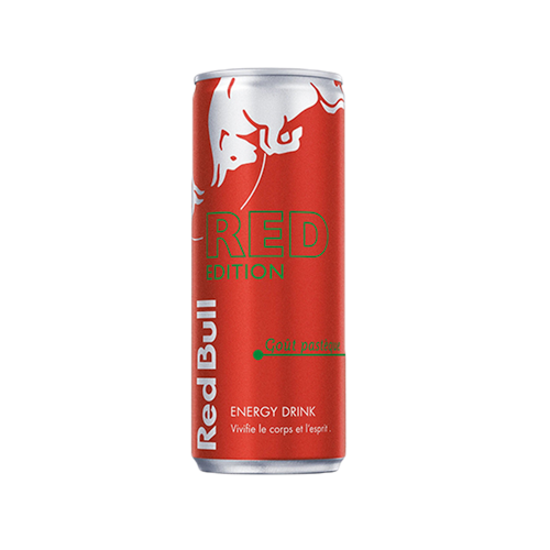 Red Bull, une boisson énergisante aux notes fruitées et acidulées, apporte un regain d’énergie immédiat.