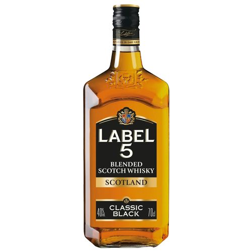 Label 5, un Whisky écossais équilibré aux arômes boisés et vanillés, avec une finale douce et légèrement épicée.
